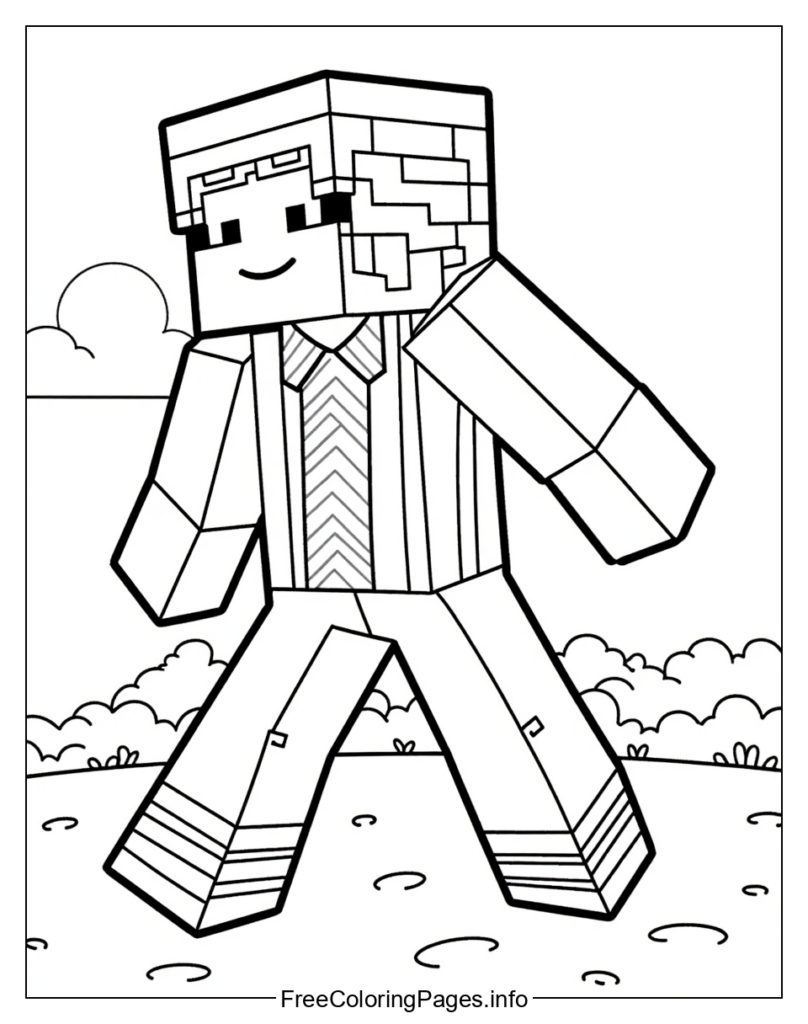 • Here are five coloring page ideas for the Minecraft man in a suit:
