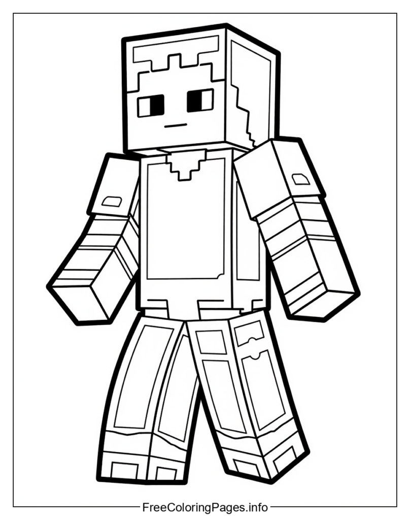• The image is a black and white line drawing of the Minecraft character Alex. Here are five coloring ideas: