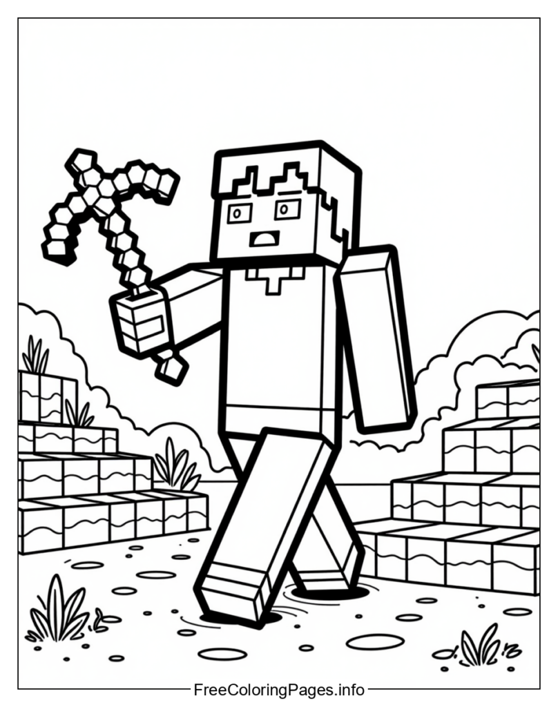 • Here are five coloring page ideas based on the image of a Minecraft character: