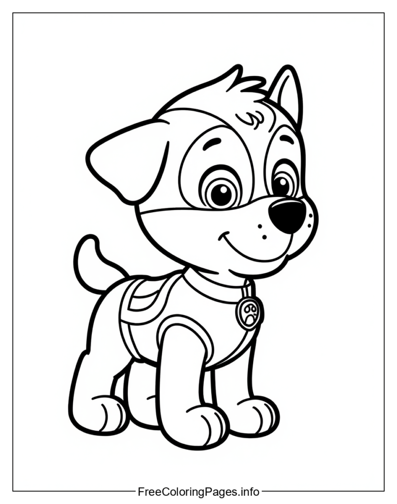 • This free printable features a black-and-white outline of Rubble from the popular childrens show, Paw Patrol.