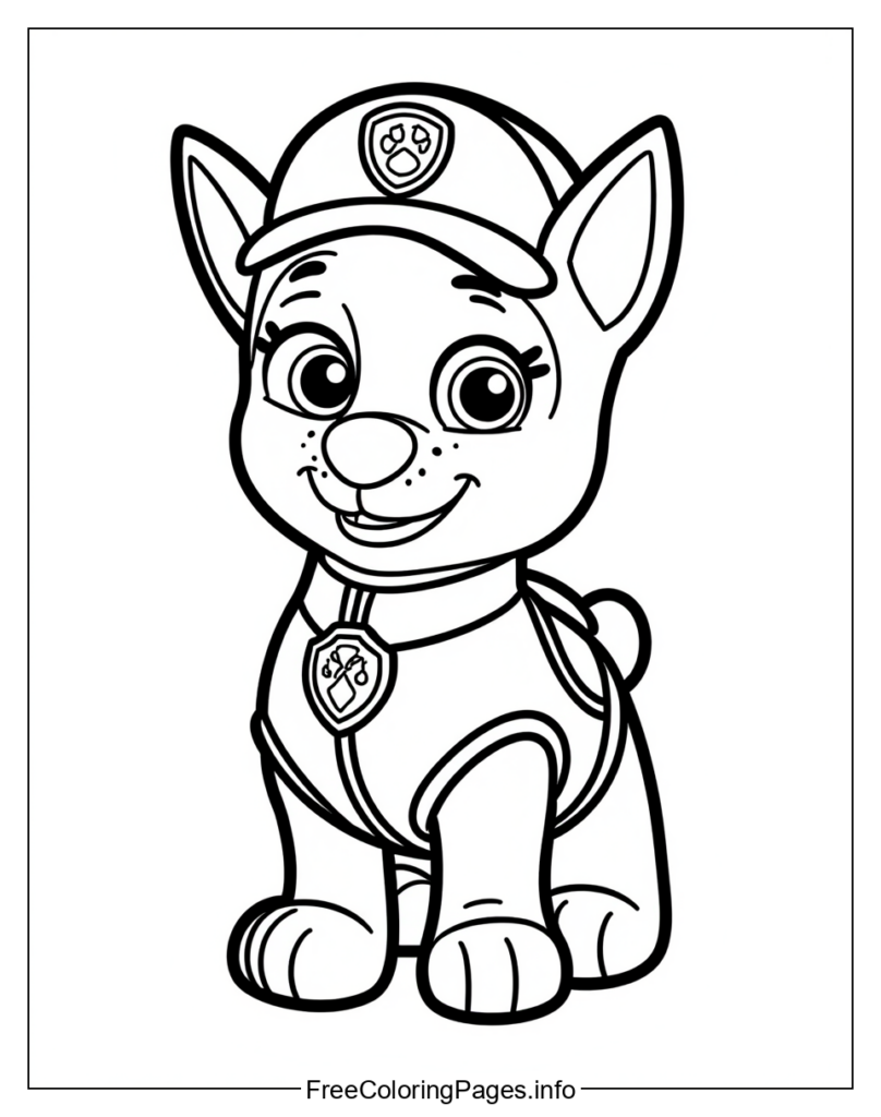 • Here are five potential coloring page ideas for the Paw Patrol character: