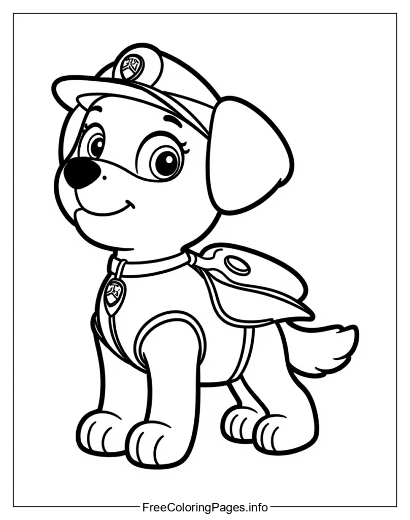 • 1) You could color in a scene that shows Marshall, one of the famous rescue dogs from the Paw Patrol series, rescuing someone or something.