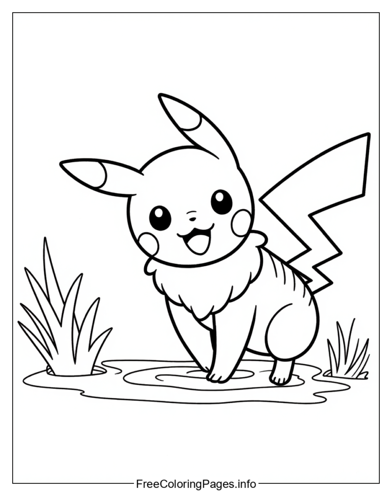 • 2) Sketchbook Pikachu: Create a sketchbook-style coloring page with bold lines and shading. Add texture to Pikachus fur using thick brushstrokes or hatching techniques.