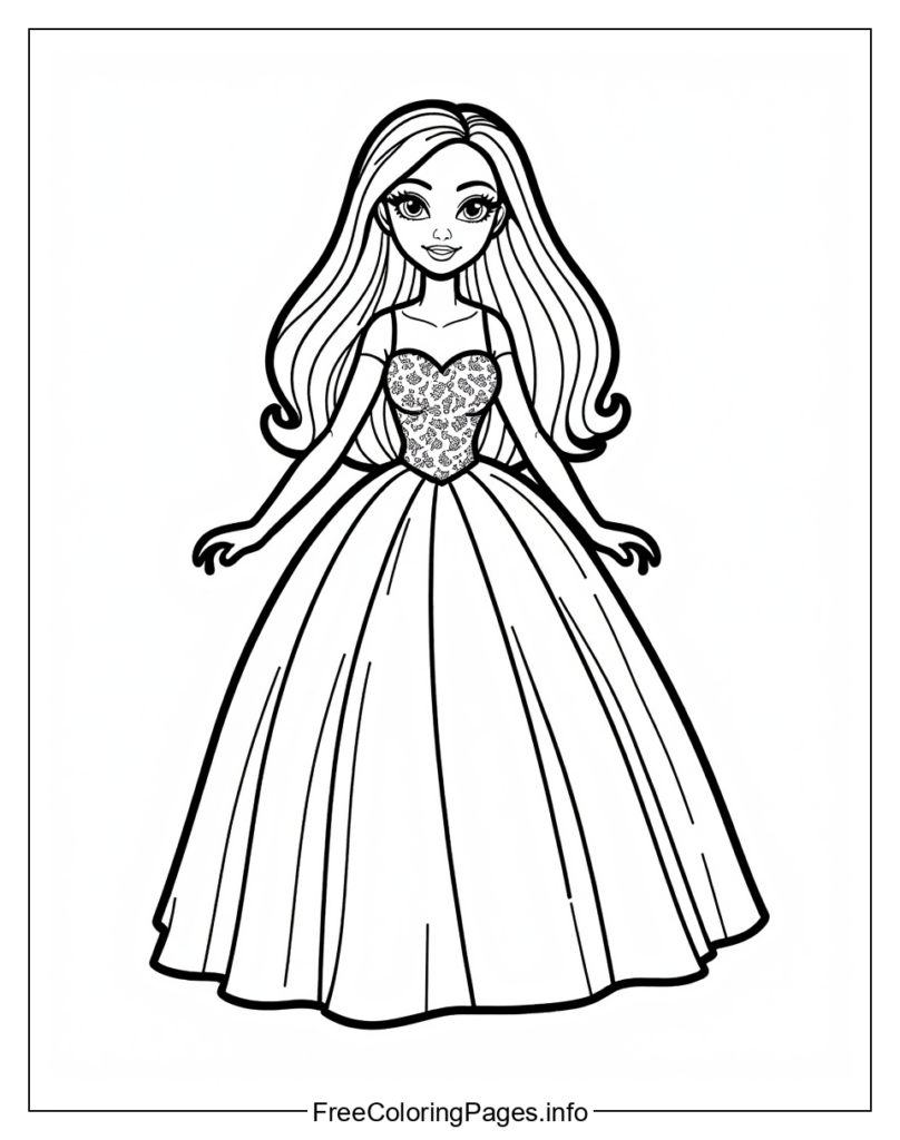 • 1. Color her dress a solid color and draw on accessories.