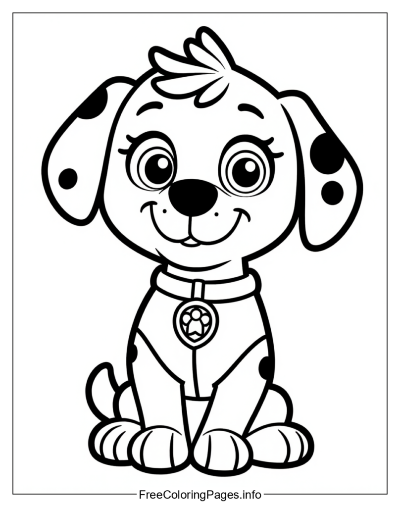 • This black-and-white line drawing of Skye, a character from the popular childrens show Paw Patrol, can be used to create five different color schemes: