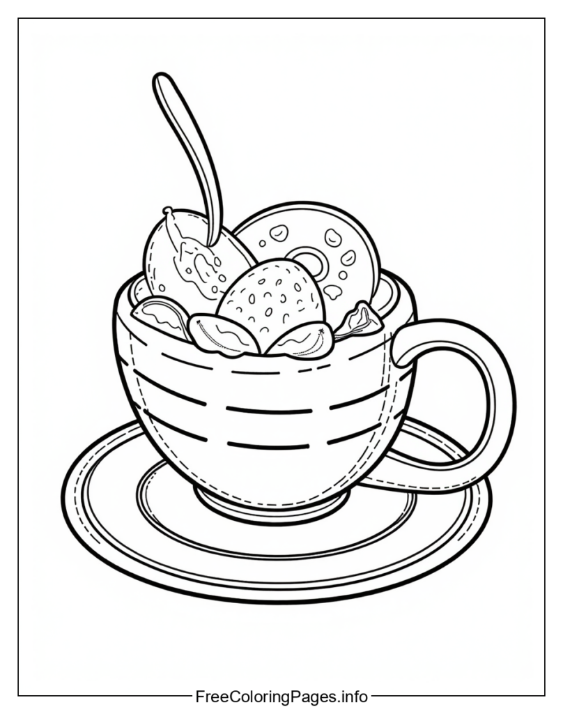 • 1. Coloring Page: Color the entire page as it appears, including the dessert.