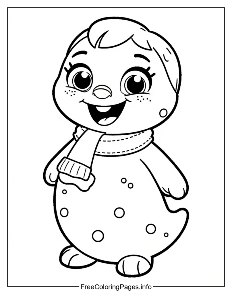 • The image is not a frozen picture, it is an outline of a girl wearing a winter outfit. Here are some ways you could color the girl: