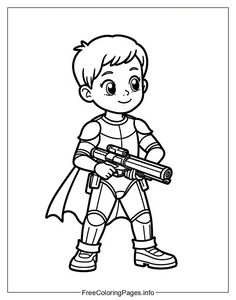 • This Star Wars coloring page features a young Padawan holding their blaster, ready to defend the galaxy. The following five coloring ideas are sure to bring out the Padawans personality: