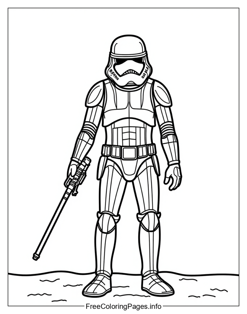 • 3. Stormtrooper on Tatooine: Set your Storm Trooper in a desert environment, such as Tatooine from Episode IV – A New Hope. You can add sand dunes, rocks, or other desert features to create a unique coloring page.