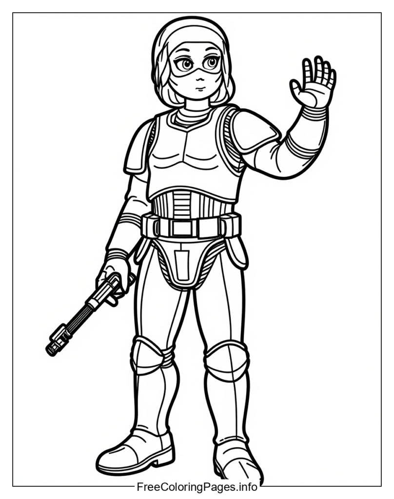 • Here are five possible coloring themes for the Star Wars character in the image: