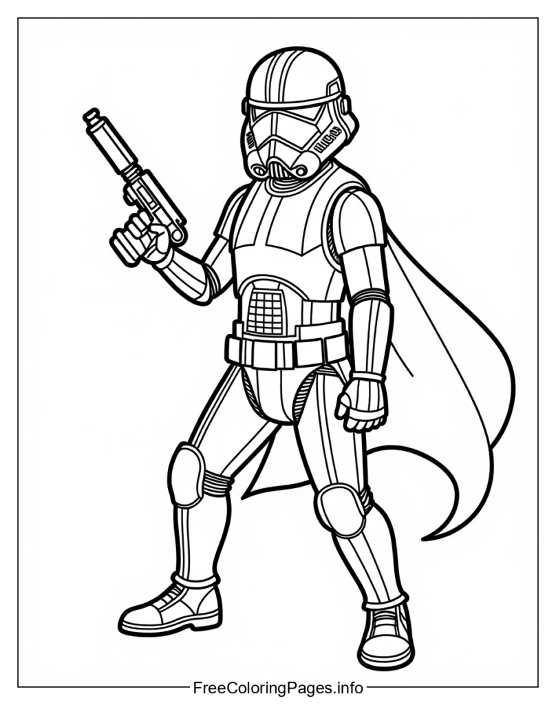 • 1. Classic Coloring: A simple, traditional coloring page featuring a Stormtrooper in full armor.