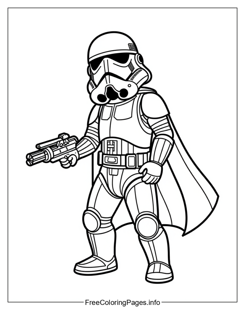 • 3. Stormtrooper with a Cape: Add a cape to the image and have fun coloring it. You can use any colors you like.