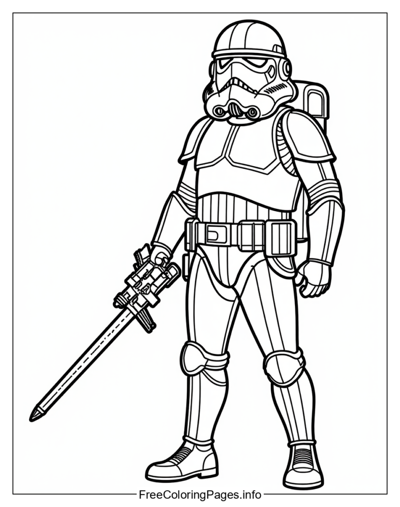 • Here are five coloring page ideas based on the Stormtrooper image: