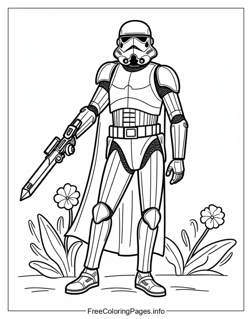 • Here are five fun coloring page ideas for the stormtrooper image:
