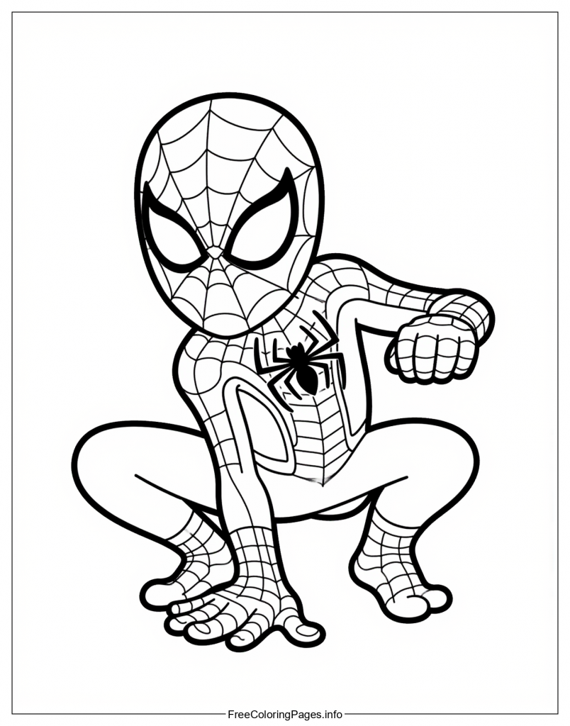 • Here are five coloring ideas for a Spider-Man coloring page: